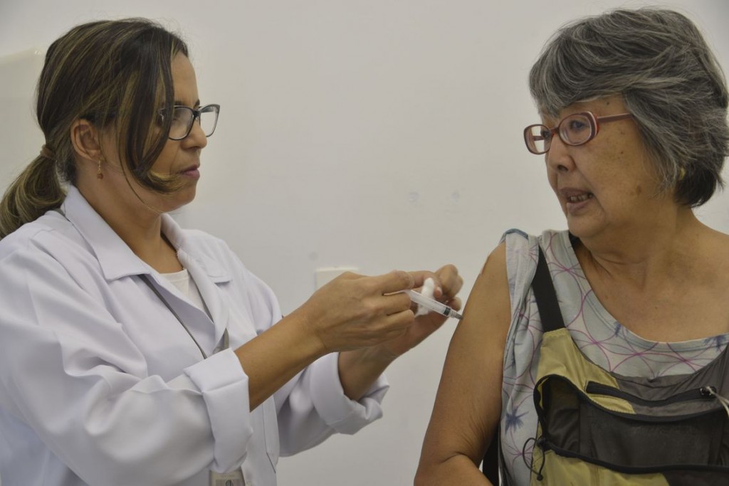 idoso Campanha Nacional de Vacinação contra a gripe, que será realizada entre os dias 23 de abril a 1º de junho em todo país, no Centro de Saúde Pinheiros, região oeste.